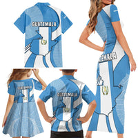 Guatemala Flag Map Family Matching Short Sleeve Bodycon Dress and Hawaiian Shirt with Blue White Swirl and Geometric Pattern Design TS04