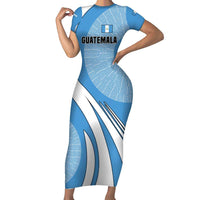 Guatemala Flag Map Family Matching Short Sleeve Bodycon Dress and Hawaiian Shirt with Blue White Swirl and Geometric Pattern Design