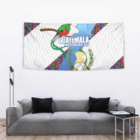 Guatemala Independence Day Tapestry Resplendent Quetzal with Coat of Arms and Maya Textiles