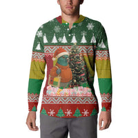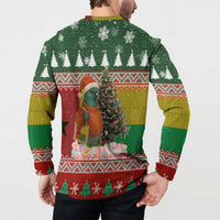 Guinea Bissau Christmas Button Sweatshirt with Santa Penguin Christmas Tree and Red Green Yellow Snowflake
