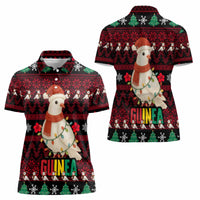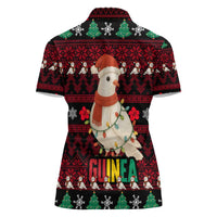 Guinea Christmas Women Polo Shirt with Festive Dove String Lights and Red Black Holiday Pattern
