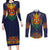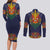 Haiti Flag Traditional Dashiki Couples Matching Long Sleeve Bodycon Dress and Long Sleeve Button Shirt Black Color LT03