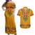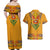 Haiti Flag Traditional Dashiki Couples Matching Off Shoulder Maxi Dress and Hawaiian Shirt Yellow Color