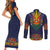 Haiti Flag Traditional Dashiki Couples Matching Short Sleeve Bodycon Dress and Long Sleeve Button Shirt Black Color LT03
