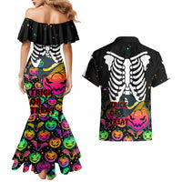 Halloween Skeleton Couples Matching Mermaid Dress and Hawaiian Shirt Trick or Treat Witch Pumpkin Colorful LT01