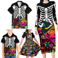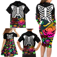 Halloween Skeleton Family Matching Long Sleeve Bodycon Dress and Hawaiian Shirt Trick or Treat Witch Pumpkin Colorful
