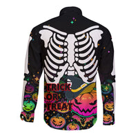 Halloween Skeleton Long Sleeve Button Shirt Trick or Treat Witch Pumpkin Colorful LT01