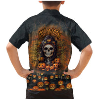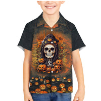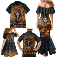 Halloween Skull Family Matching Mermaid Dress and Hawaiian Shirt Pumpkin-Themed TS04