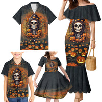 Halloween Skull Family Matching Mermaid Dress and Hawaiian Shirt Pumpkin-Themed