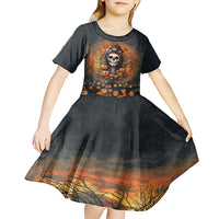 Halloween Skull Kid Short Sleeve Dress Pumpkin-Themed