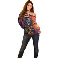 Halloween Skull Off Shoulder Sweater Hello Darkness My Old Friend