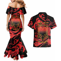 Happy Albania Independence Day Couples Matching Mermaid Dress and Hawaiian Shirt Albanian Eagle LT15