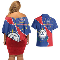 Happy Cape Verde Independence Day Couples Matching Off Shoulder Short Dress and Hawaiian Shirt Coat Of Arms With Map