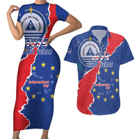Happy Cape Verde Independence Day Couples Matching Short Sleeve Bodycon Dress and Hawaiian Shirt Coat Of Arms With Map LT15