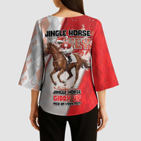 Add a chic touch to your wardrobe with the Horse Racing Christmas Kimono Sleeve Blouse Giddy Up Pick Up Your Feet from Wonder Print Shop. Designed for versatility, this V-neck blouse features flowing kimono-style sleeves and a relaxed fit — perfect for both casual and dressy occasions. Crafted with premium polyester fabric, it offers a soft, lightweight feel for all-day comfort.