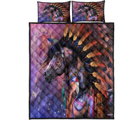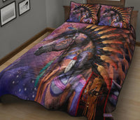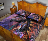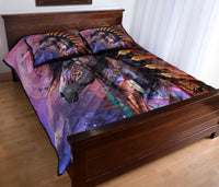 Horse Tribe Purple Native American Quilt Bed Set LT10