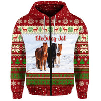 Icelandic Horse Christmas Zip Hoodie Red LT8