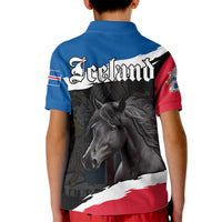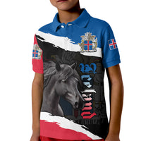 Icelandic Horse Polo Shirt for Kid Icelandic Coat of Arm Black LT9