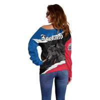 Icelandic Horse Off Shoulder Sweater Icelandic Coat of Arm - Black LT9