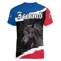 Icelandic Horse Women V Neck T Shirt Icelandic Coat of Arm - Black LT9
