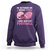 In October We Wear Pink Football Breast Cancer Awareness Sweatshirt Pink Ribbon Checkered Game Day