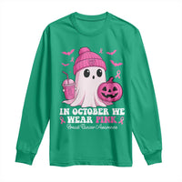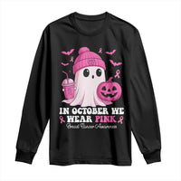 In October We Wear Pink Ghost Long Sleeve Shirt Halloween Breast Cancer Pink Ribbon Pumpkin