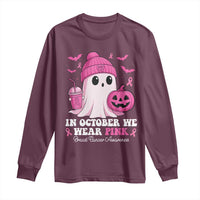 In October We Wear Pink Ghost Long Sleeve Shirt Halloween Breast Cancer Pink Ribbon Pumpkin TS10