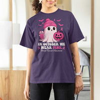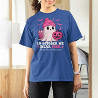 In October We Wear Pink Ghost T Shirt For Women Halloween Breast Cancer Pink Ribbon Pumpkin