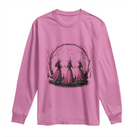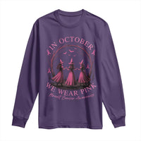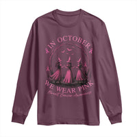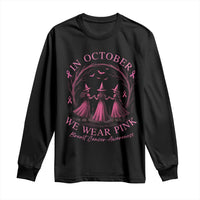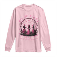 In October We Wear Pink Witches Long Sleeve Shirt Spooky Breast Cancer Witch Halloween Pink Ribbon