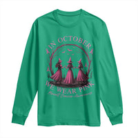 In October We Wear Pink Witches Long Sleeve Shirt Spooky Breast Cancer Witch Halloween Pink Ribbon TS10