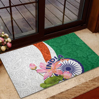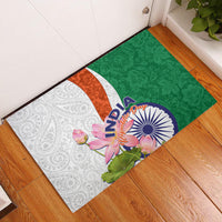 India Republic Day Rubber Doormat Lotus Floral Paisley Pattern