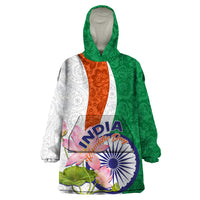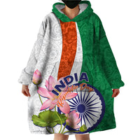 India Republic Day Wearable Blanket Hoodie Lotus Floral Paisley Pattern