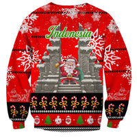 Indonesia Christmas Sweatshirt with Santa Temple Snowflakes and Red Candy Cane Pattern TS04