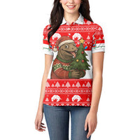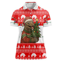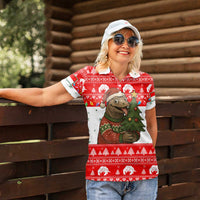 Indonesia Christmas Women Polo Shirt with Komodo Dragon Santa Hat Christmas Tree and Red White Holiday TS04