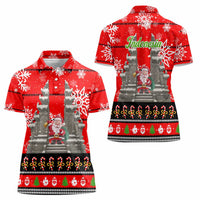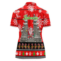 Indonesia Christmas Women Polo Shirt with Santa Temple Snowflakes and Red Candy Cane Pattern