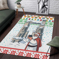 Iran Christmas Area Rug with Santa Taking Photos Ancient Columns and Snowflake Gift Pattern TS04