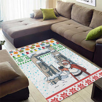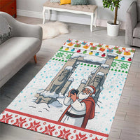 Iran Christmas Area Rug with Santa Taking Photos Ancient Columns and Snowflake Gift Pattern