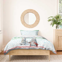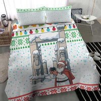 Iran Christmas Bedding Set with Santa Taking Photos Ancient Columns and Snowflake Gift Pattern TS04
