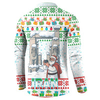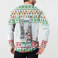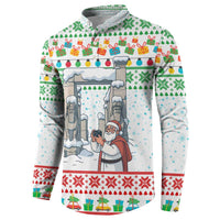 Iran Christmas Button Sweatshirt with Santa Taking Photos Ancient Columns and Snowflake Gift Pattern TS04