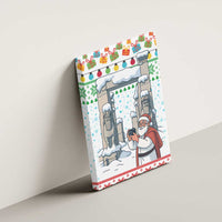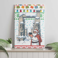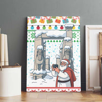Iran Christmas Canvas Wall Art with Santa Taking Photos Ancient Columns and Snowflake Gift Pattern