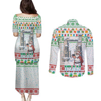 Iran Christmas Couples Matching Puletasi and Long Sleeve Button Shirt with Santa Taking Photos Ancient Columns and Snowflake Gift Pattern