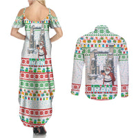 Iran Christmas Couples Matching Summer Maxi Dress and Long Sleeve Button Shirt with Santa Taking Photos Ancient Columns and Snowflake Gift Pattern TS04