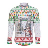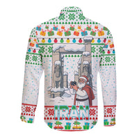 Iran Christmas Long Sleeve Button Shirt with Santa Taking Photos Ancient Columns and Snowflake Gift Pattern TS04