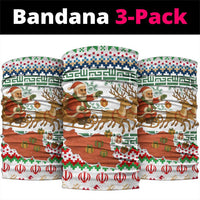 Iran Christmas Neck Gaiter with Santa Sleigh Reindeer Map and Green Red Snowflake Pattern