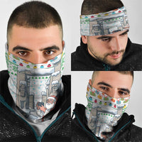 Iran Christmas Neck Gaiter with Santa Taking Photos Ancient Columns and Snowflake Gift Pattern