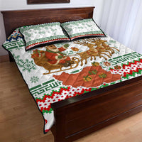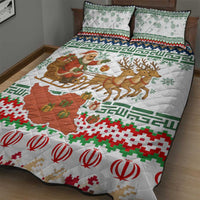 Iran Christmas Quilt Bed Set with Santa Sleigh Reindeer Map and Green Red Snowflake Pattern