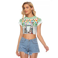 Iran Christmas Raglan Cropped T Shirt with Santa Taking Photos Ancient Columns and Snowflake Gift Pattern TS04