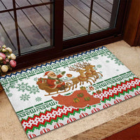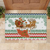 Iran Christmas Rubber Doormat with Santa Sleigh Reindeer Map and Green Red Snowflake Pattern TS04
