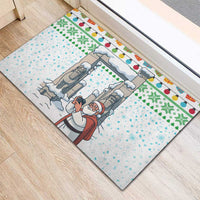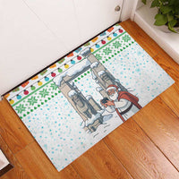 Iran Christmas Rubber Doormat with Santa Taking Photos Ancient Columns and Snowflake Gift Pattern TS04