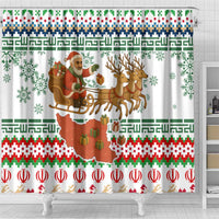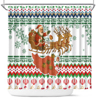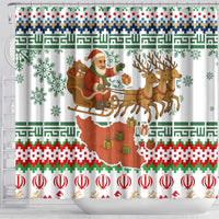 Iran Christmas Shower Curtain with Santa Sleigh Reindeer Map and Green Red Snowflake Pattern